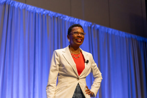 People sit in a convention center room and listen to a speaker present on APWA Accreditation.